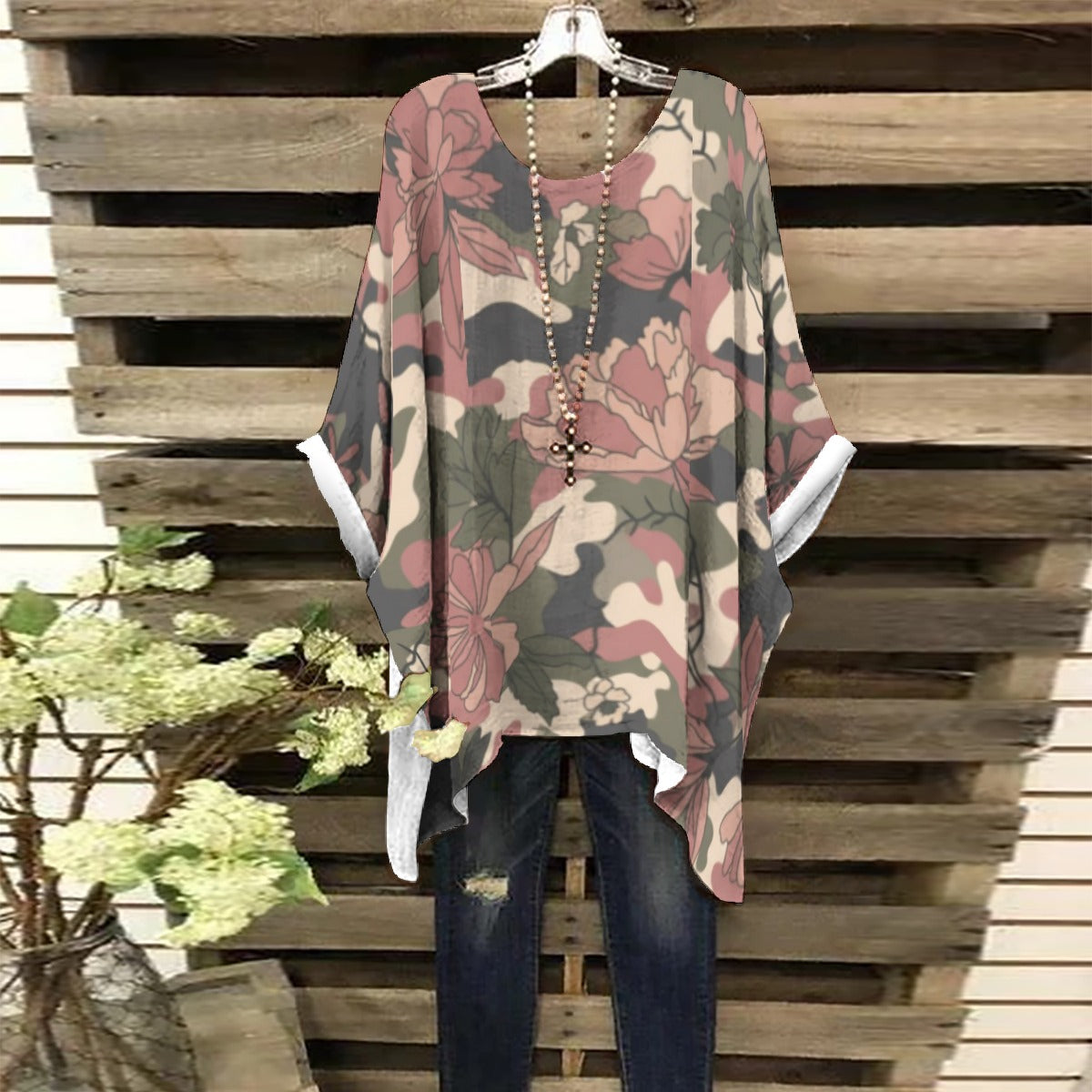 A fashionable shirt with an bat sleeve design and irregular crosses on the hem; Nice fabric can provide you with all-day ease and comfort